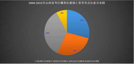 2008-2015年总共考查类比推理题的数量为65道,那么类比推理题考查的具体考点数量分布又是如何的呢?