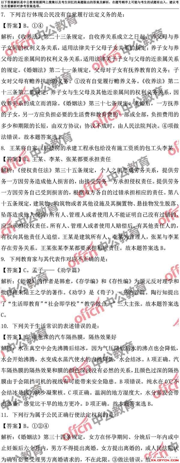 2017山西省公务员考试模拟试题答案