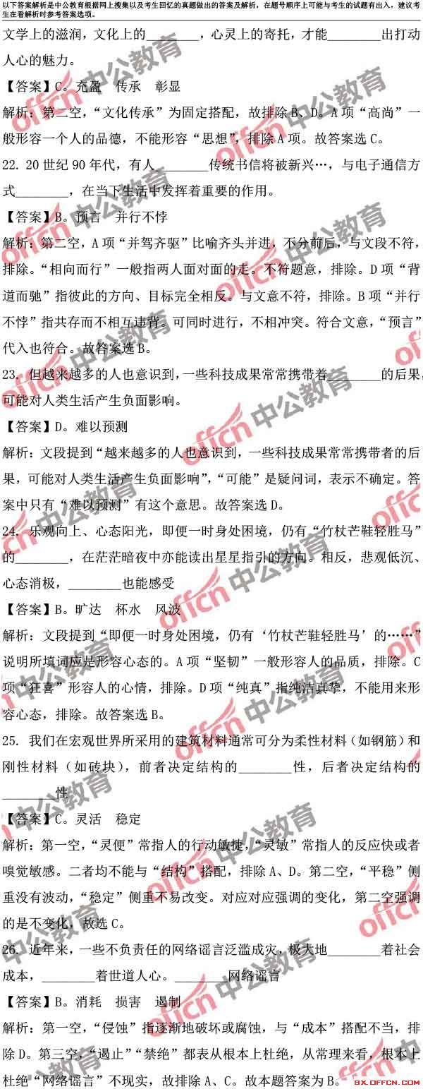 2017山西省公务员考试模拟试题答案