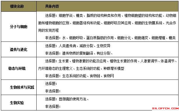 (2)稳态与环境模块的高频考点包括:植物激素、内环境稳态、生态系统、激素调节、体温调节、食物链、食物网。