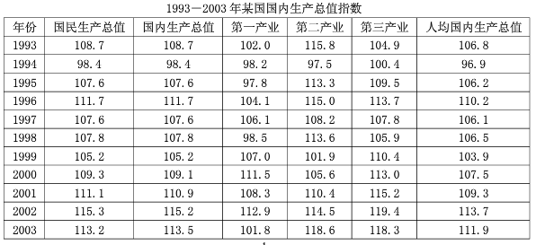【答案】C。中公解析:人均国内生产总值增长最快的年份就是指数最大的年份2002年。