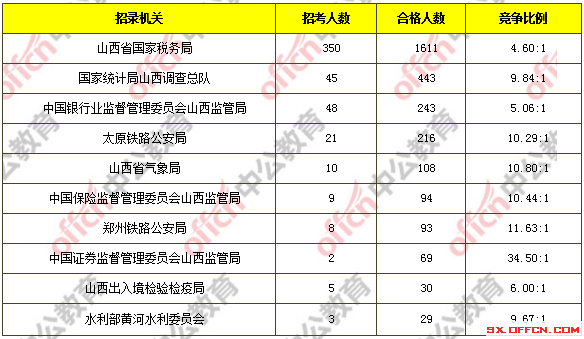 截止到11月1日16时,通过审核人数前三位的部门依次是:山西省国家税务局、国家统计局山西调查总队、中国银行业监督管理委员会山西监管局,三部门通过审核总人数达2297人,占通过审核总人数的76.46%。