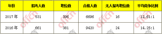 截至11月3日16时,据山西中公教育统计,国考职位中工作地点在山西的职位通过审核总人数为6696人,和昨天相比增加了1727人,与去年同期相比合格人数减少了1358人,截止目前共有16个职位无人报考,平均竞争比例为12.61:1,和去年同期竞争比下降了1.64%。
