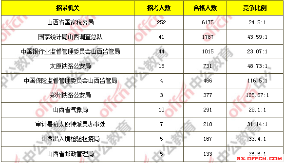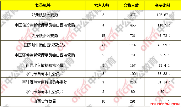 为帮助广大考生更清晰的了解今日报名情况,山西中公教育整理了审核通过人数前十位的部门以及竞争比例最激烈的十大部门,供广大考生参考:
