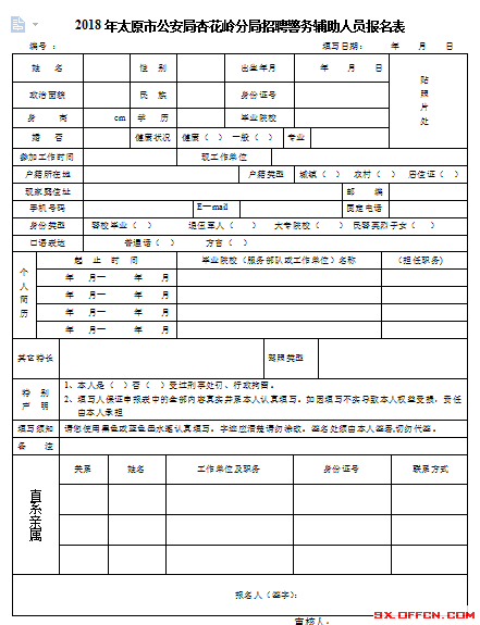 2018太原市公安局杏花岭分局招聘警务辅助人员报名表: