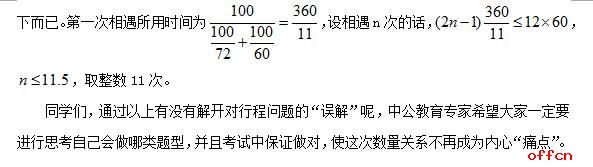 中公解析:C。这道题目直接考察同时异地想想而行的规律。从开始到第n次相遇所用时间为第一次相遇所用时间的(2n-1)倍,只不过这次没有让求时间而是让求次数颠倒了一