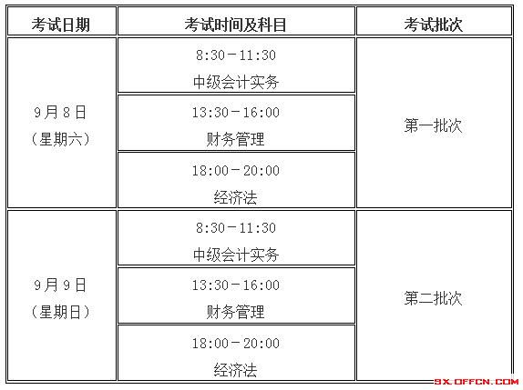中级资格考试于9月8日—9日举行,共两个批次。中级资格各科目具体考试时间如下: