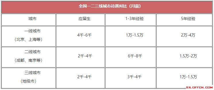如果把薪酬和所在城市区分开,那么就没有什么说服力了,毕竟各级城市的消费水平不同,我们要看的是CPA在这些城市里的薪酬水平处于一个什么位置。以下是注会分别在一二三线城市的薪酬对比,数据来自于各城市的招聘信息,可以参考一下。