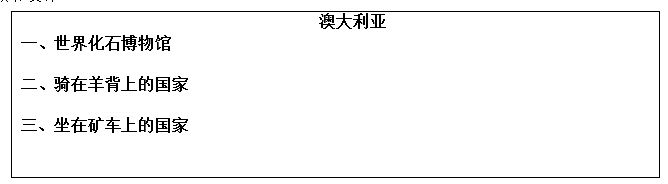 学生:结合《澳大利亚在世界中的位置》图、《大陆漂移示意图》和补充材料分析澳大利亚才有如此多的古老生物的原因。