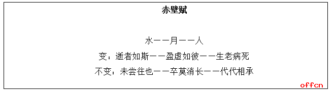 明确:水的变化是逝者如斯,不变是未尝往也;月的变化是盈虚如彼,不变是卒莫消长;人的变化是生老病死,不变的是代代相乘;由物及人,情景交融,