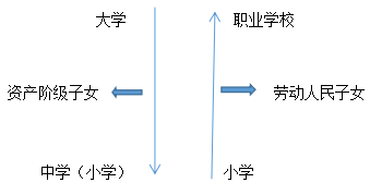 由图可以看出,两轨之间平行不交叉,既不相通也不相接,体现了严格的阶级性。也就是劳动人民子女无法接受大学教育,剥夺了劳动人民子女接受大学教育的权利,不利于普及教育。但是有利于教学质量的提高。