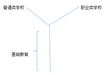 由图可以看出,分支型学制像一个“Y”字,因又称为“Y型学制”,特点是所有人先共同接受基础教育,然后一支升入普通类学校学习,一支升入职业类学校学习。代表国家是前苏联和中国。但是前苏联是由双轨制发展到分支型,而中国是由单轨制发展到分支型。