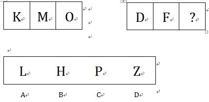 【中公解析】答案:B。通过对比,此题排除开口数、直曲性、对称性等规律,最后考虑字母的顺序,发现,每组图形的三个字母中间均间隔一位,以此类推,第二组应选H字母的B项。